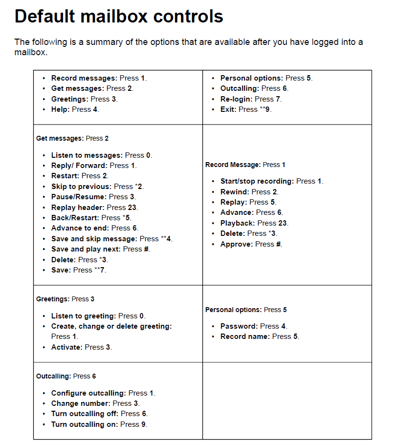 Avaya embedded mailbox controls